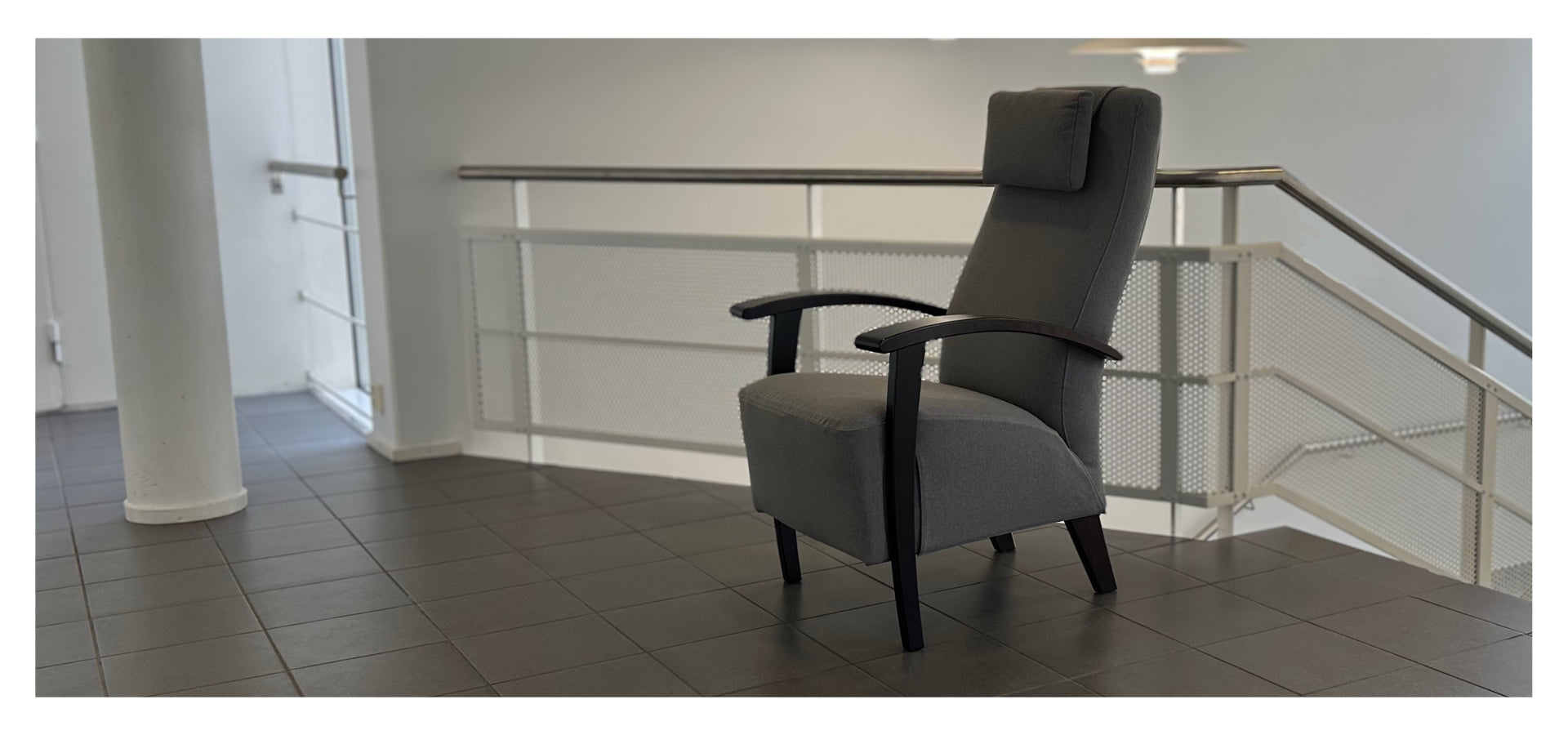 Normaalilla istuinkorkeudella oleva ryhdikäs nojatuoli.