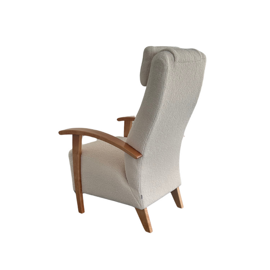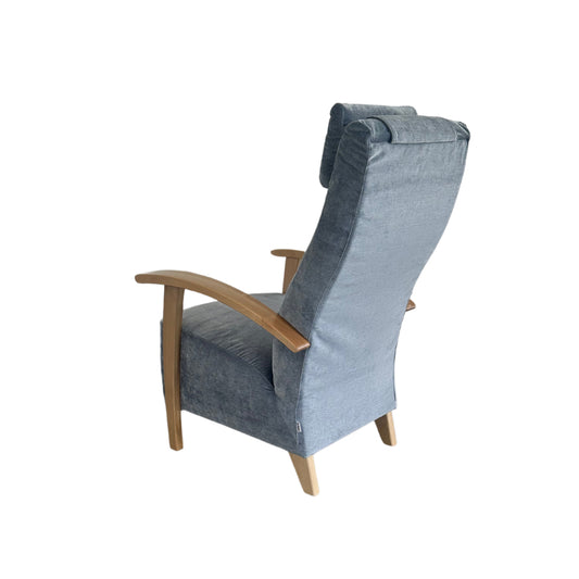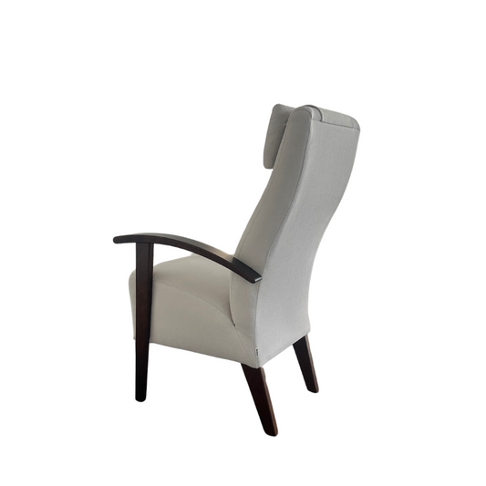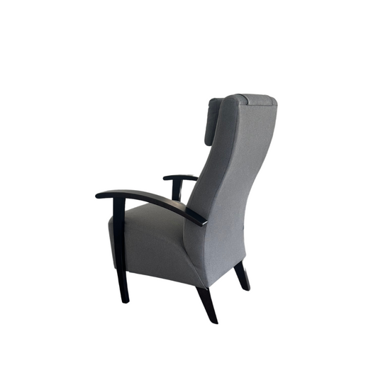 Normaalilla istuinkorkeudella oleva ryhdikäs nojatuoli.